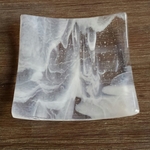 2016Schaaltje van aubergine en wit gekamd glas.